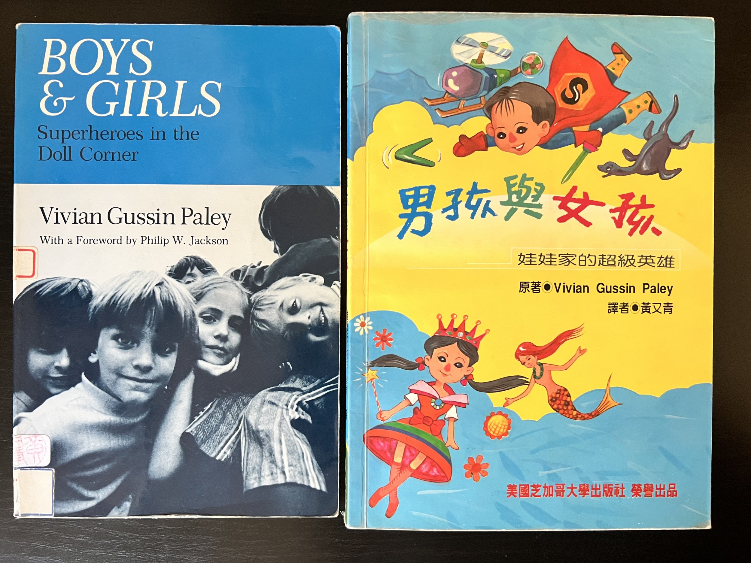 《男孩與女孩:娃娃家的超級英雄》,黃又青譯,台北:光佑文化事業,1998。Boys and Girls: Superheroes in the Doll Corner. Chicago: University of Chicago Press, 1984.